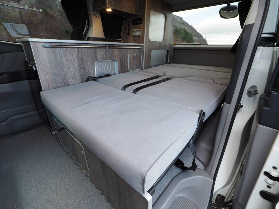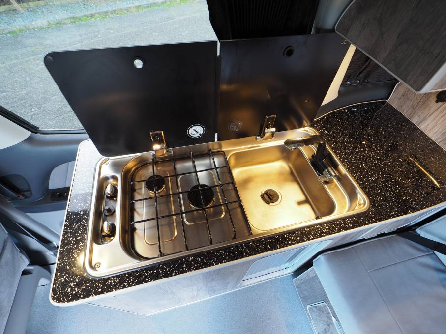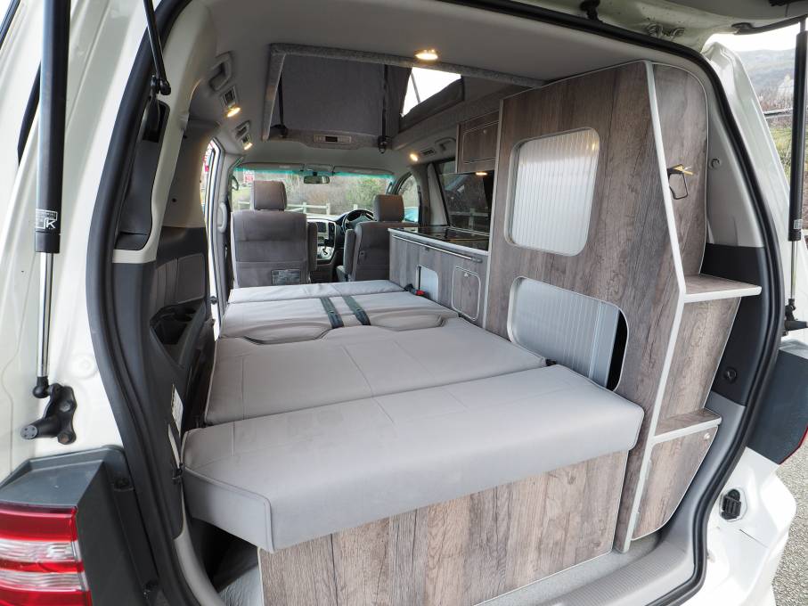 low mileage Toyota Alphard 3.0 V6 Auto Campervan. Imported and converted in 2022 the Alphard offers luxurious motoring and as a registered Motor Caravan provides multi-purpose versatility as a daily driver, day-van or full blown campervan to take you on adventures far and wide. This is a 4 belt, 2 berth conversion with elevating poptop and has an awning rail to allow the addition of a drive-away awning. Currently MOT’d until April 2026 however a new MOT will be provided before sale along with a 12 month national mechanical and habitation warranty. Only 66k miles covered with the last service in October 2025. The timing belt was replaced in 2022 at 60k miles. Driver and passenger comfort is enhanced with cab air con, electric windows and mirrors, entertainment system with bluetooth, cruise control and electric side doors. There is a rear towbar fitted and along with 12v electrics to power lighting and the fridge there is 230v electric hook-up. A gas bottle is supplied and provides energy for the 2 burner gas hob. A sink with cold water tap is fitted.