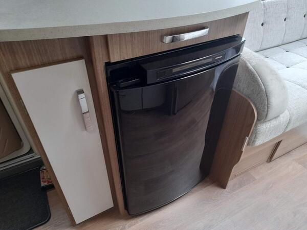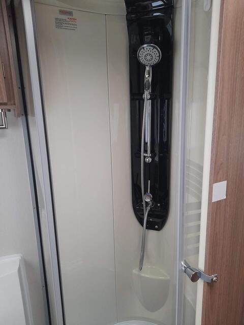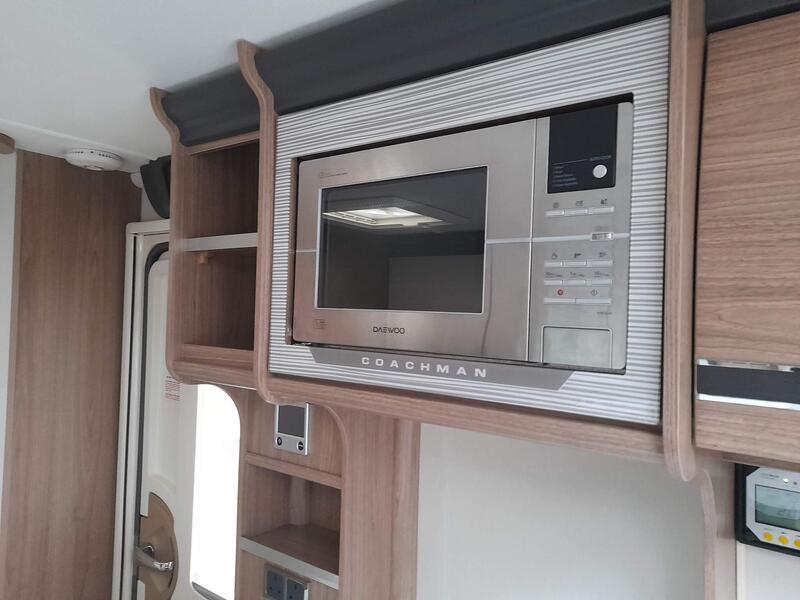 Home from home comforts with a fully featured kitchen providing a 3-burner gas hob and electric hot plate, separate oven and grill, sink with mixer tap, microwave oven and under counter 3-way fridge. The private washroom has a flushing cassette toilet, sink and vanity mirror with storage and a separate shower cubicle. The light and fresh furnishings provide a comfortable lounge with two table options to make a great place to dine and entertain. An Avtex TV is fitted and at night the twin side sofas can be used as small single beds or pull together to create a large double bed. Plenty of storage in the overhead lockers, wardrobe, cuoboards and drawers.