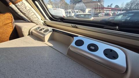 Externally a 230v socket and gas bbq point is fitted as well as the usual access points for water, electric and gas. There is an underslung refillable gas tank for ease and ideal for European travel.